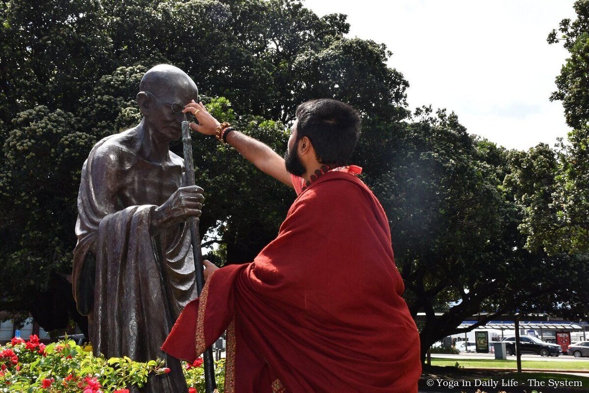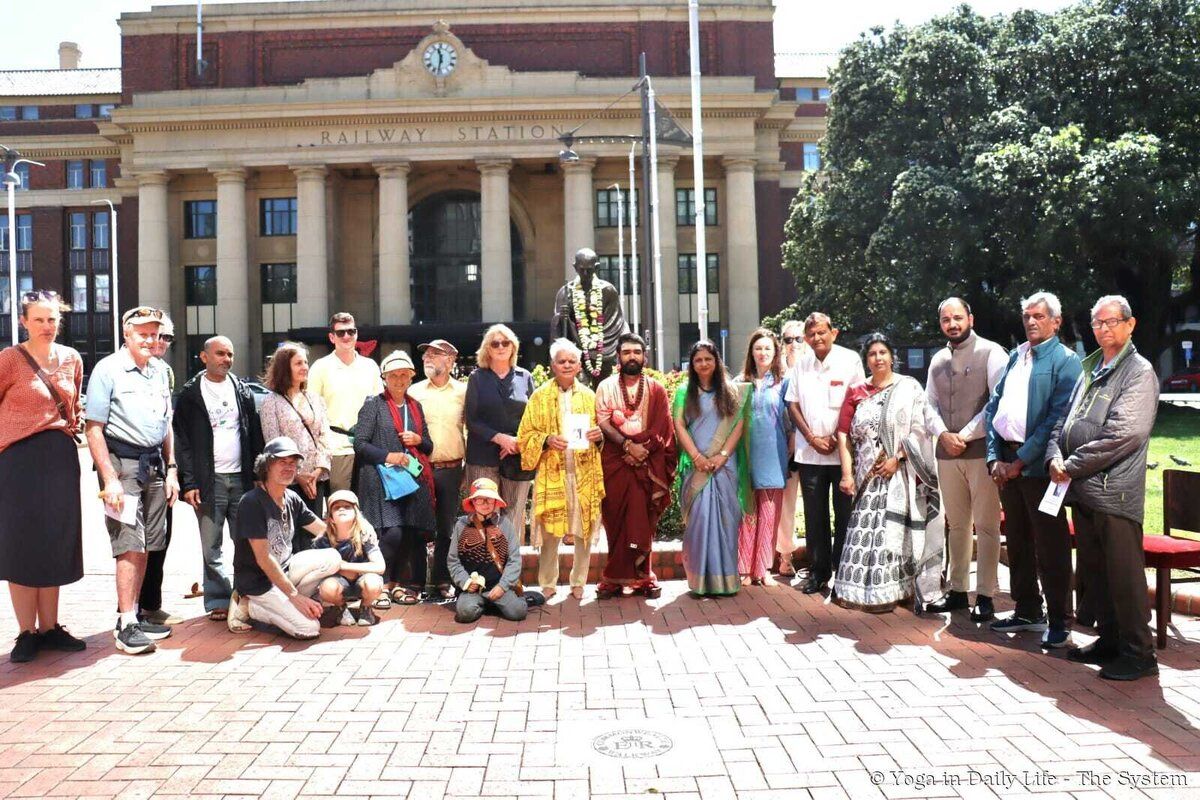 Swami Avatar Puri Ji also attended the homage ceremony at the statue of Mahatma Gandhi in front of Wellington Railway Station on the occasion of Martyrs’ Day, together with Her Excellency High Commissioner Neeta Bhushan, members of the Pujya Mahatma Gandhi Birth Centenary Celebration Committee (PMGBCC), and community leaders.