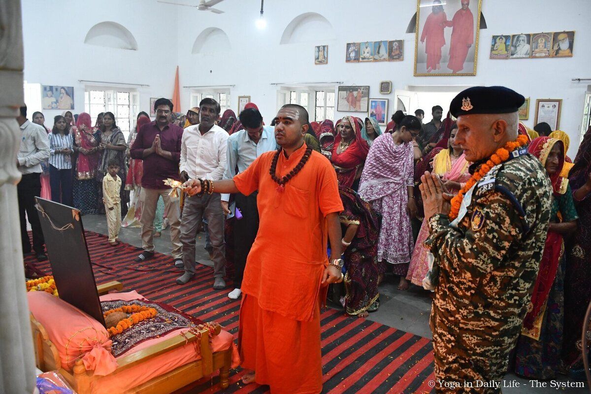 The celebration began with a joyful procession through the village of Kailash, where devotees offered flower malas (garlands) to Swami Avatar Puriji and expressed deep gratitude for the devoted service of Chitarmal Meena Ji.