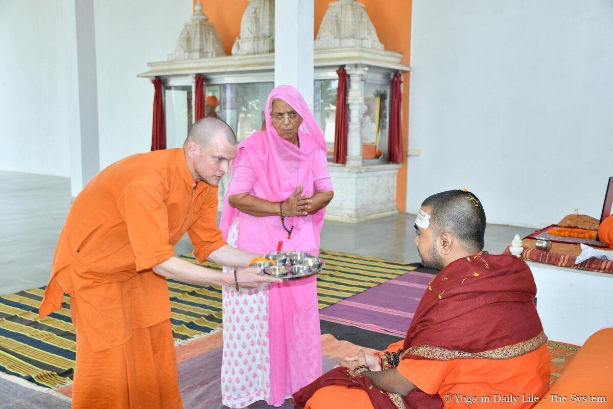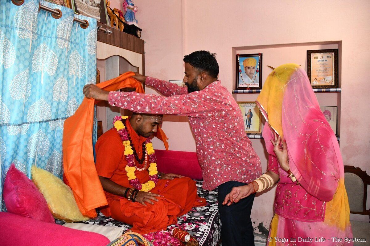 Swami Avatar Puriji also visited the house of Chandan Ji, the sacred birthplace of Holy Guruji, where he offered prayers and blessings and lovingly gave a birthday gift to Raju Ji, Chandan Ji’s son.